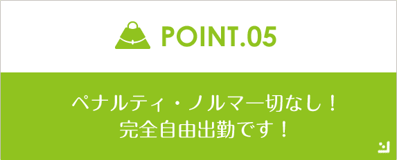 ● ノルマ・ペナルティ等は一切ありません!完全自由出勤ですので自分の都合で働けます!