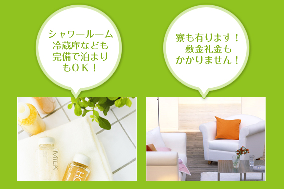 シャワーも完備で遅くから働いてそのまま泊まりもOK!