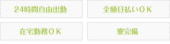 ■ 報酬システムも選べます!全額日払い制、月2回の振込システム、時給保証システムもあります! |