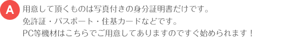 パソコン・ウェブカメラ等必要なものは全て用意いたします!