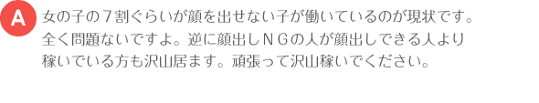 | 「エムズワーク」では顔だしの強制は致しません! |